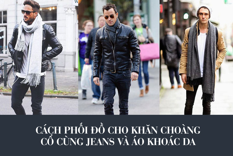 Cách phối đồ cho khăn choàng cổ cùng jeans và áo khoác da