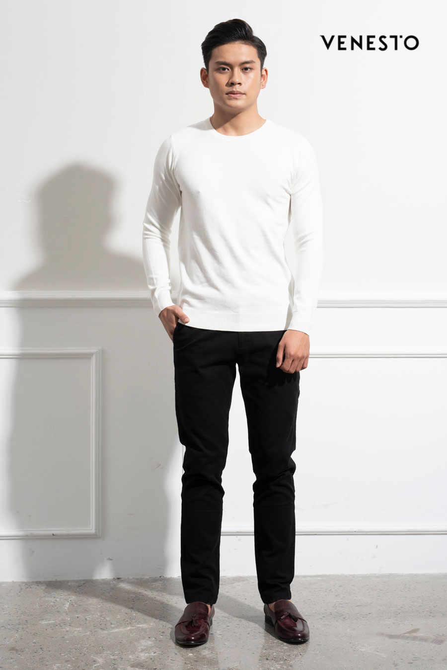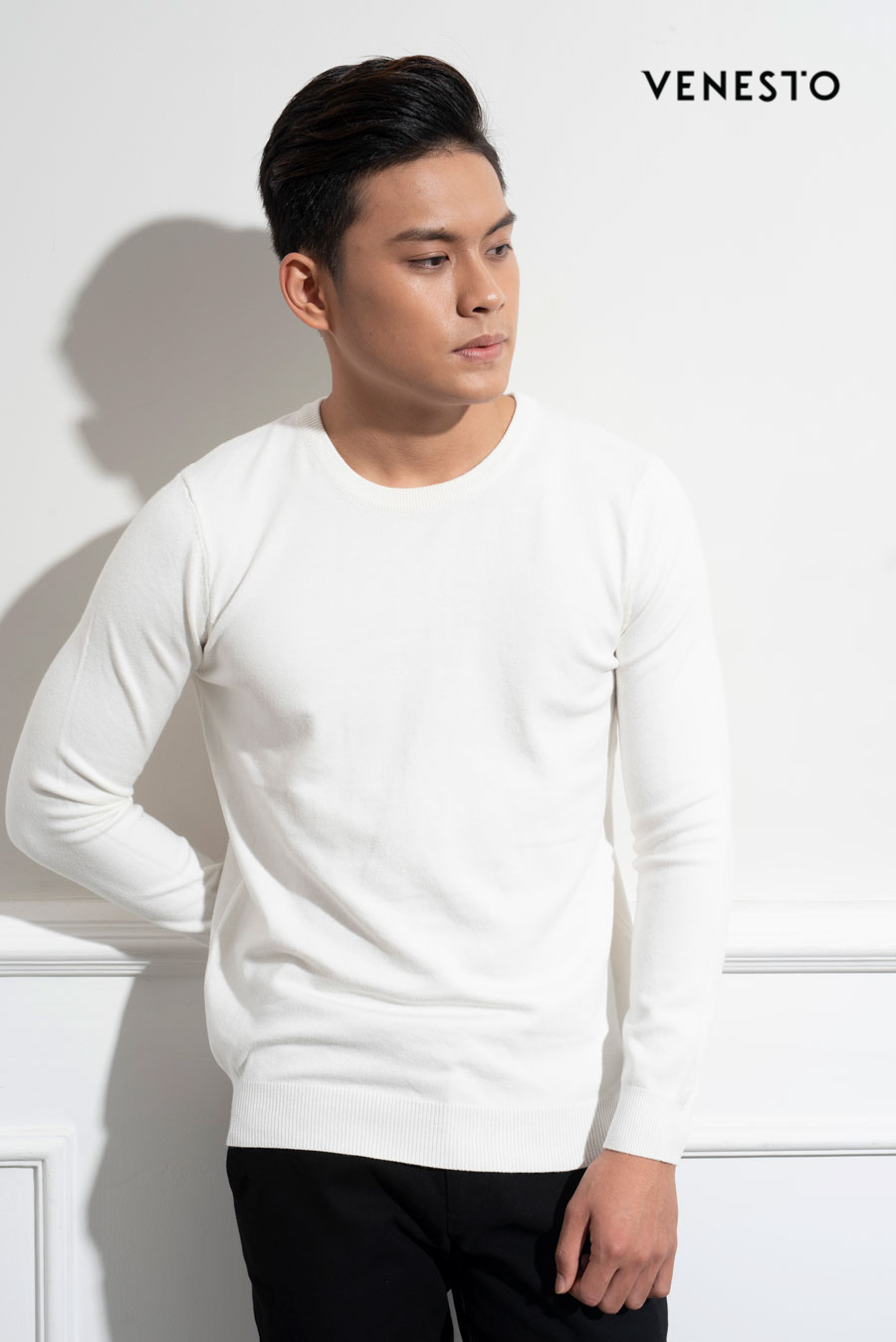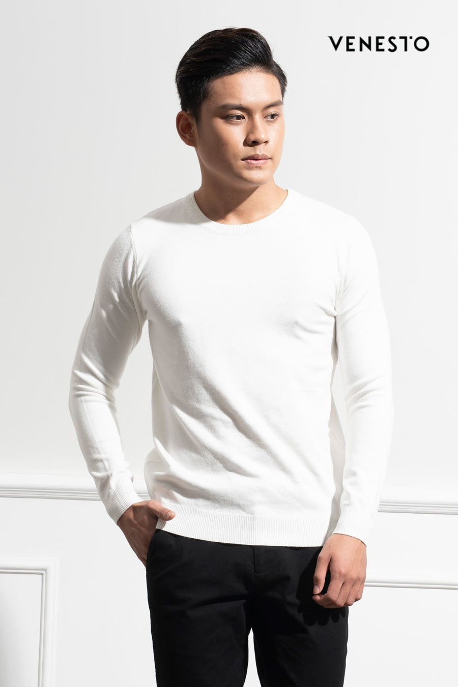 Áo len trắng crew neck